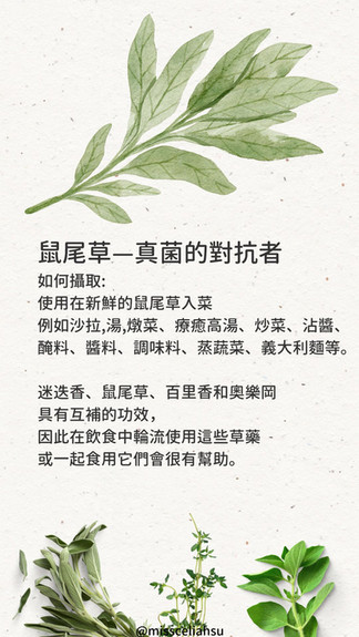 這個藥草的性質就是對抗真菌,攝取鼠尾草是從裡到外療癒真菌感染